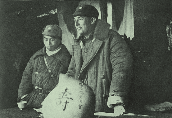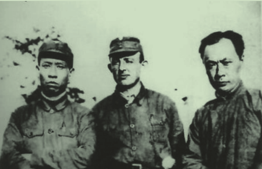 Rosenfeld (center) with Liu Shaoqi (left) and Chen Yi (right) in Yancheng, Jiangsu Province, 1941
