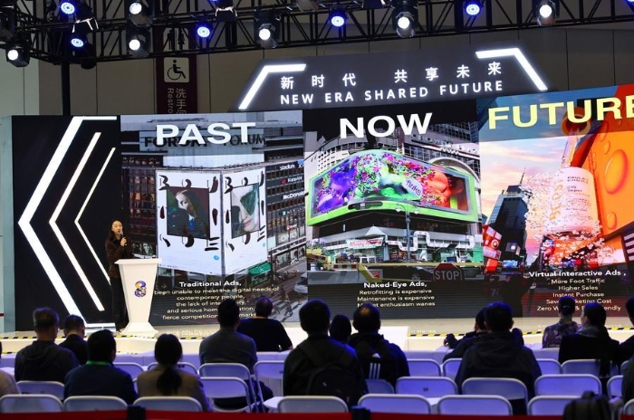 An exhibitor introduces a virtual interactive advertisement product at the Innovation Incubation Special Section during the eighth China International Import Expo (CIIE) in east China's Shanghai, Nov. 9, 2025. (Xinhua/Fang Zhe)